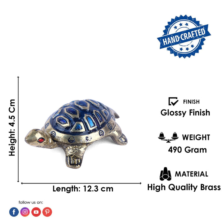 Brass Colored Turtle | Small Blue Turtle Figurine | Feng Shui Turtle for Prosperity | Blue Turtle for Positive Energy | Vastu Turtle Decor | Spiritual Turtle for Home | Good Luck Turtle for Desk | Protective Turtle Statue | Handmade Vastu Decor | satvikstore turtle