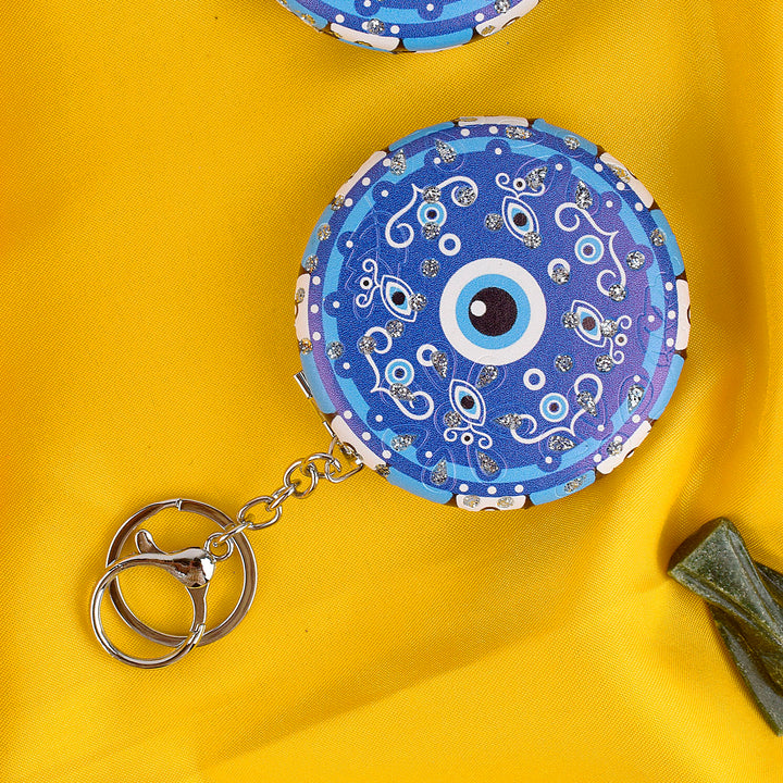 Stylish & Protective Round Evil Eye Keychain with Foldable Mirror