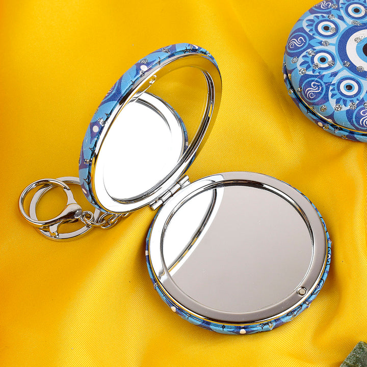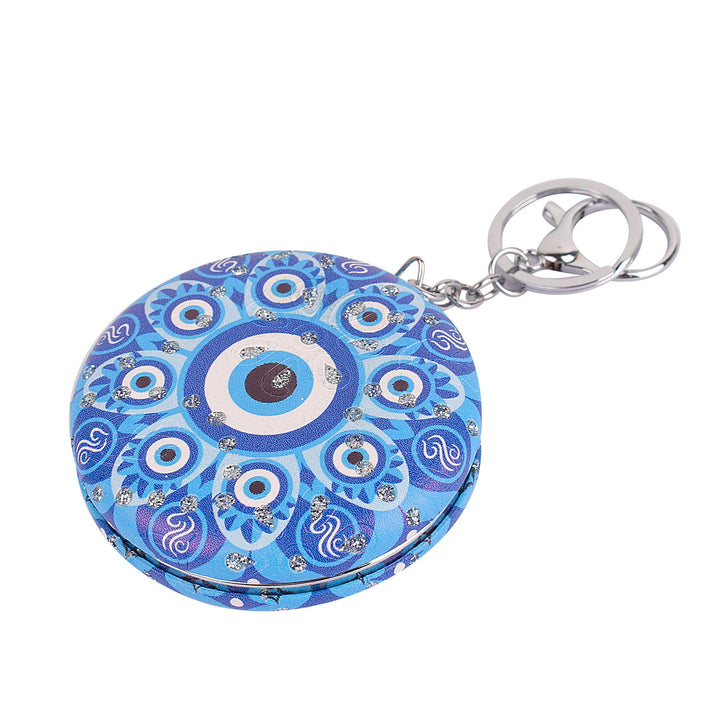 Stylish Round Evil Eye Keychain with Foldable Mirror