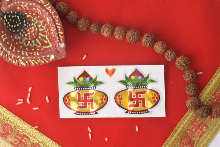 "Enhance the spiritual energy of your space with Swastik Blessings for Every Home stickers. These beautifully designed stickers feature the auspicious Swastik symbol, bringing positive vibes, prosperity, and good fortune to your home. Perfect for decorating walls, doors, or any surface, these stickers add a touch of divinity and sacred charm to your surroundings."