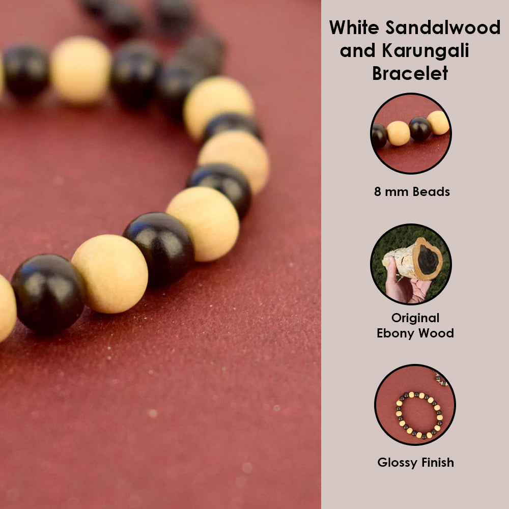 Govt. Certified Karungali/Ebony & White Sandalwood Beads Bracelet