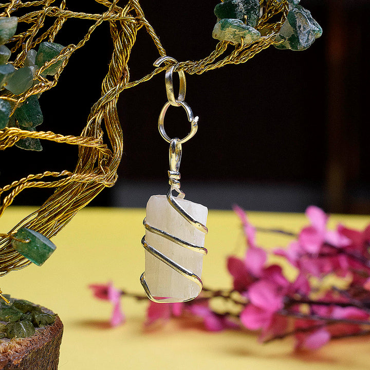 Natural Wire Wrapped Selenite Crystal Stone Pendant | Satvikstore.in – satvikstore.in