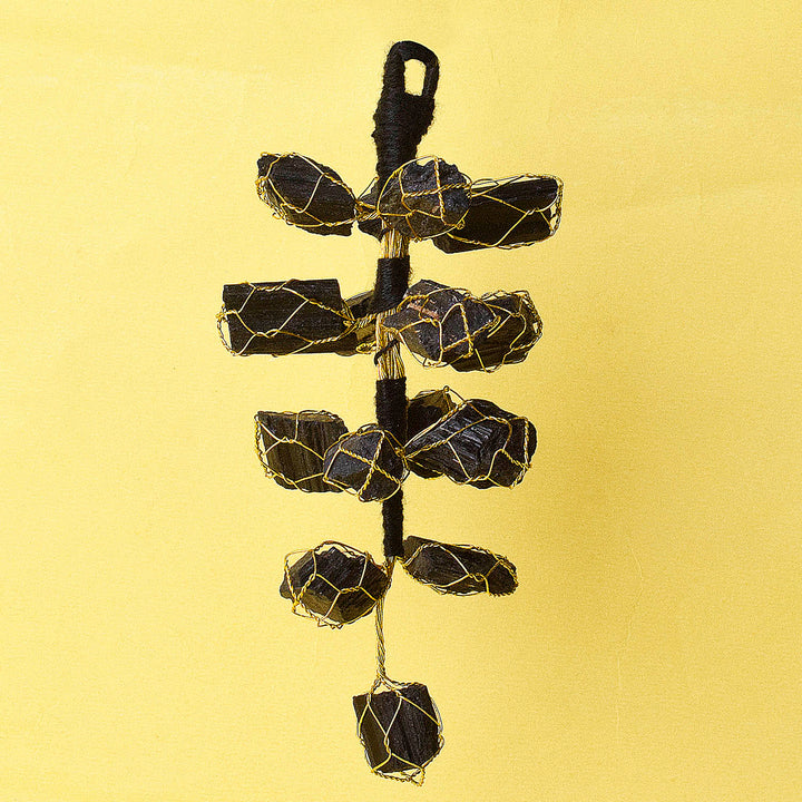 Protective Presence: Rough Black Tourmaline Vaastu Door Hanging Agains – satvikstore.in