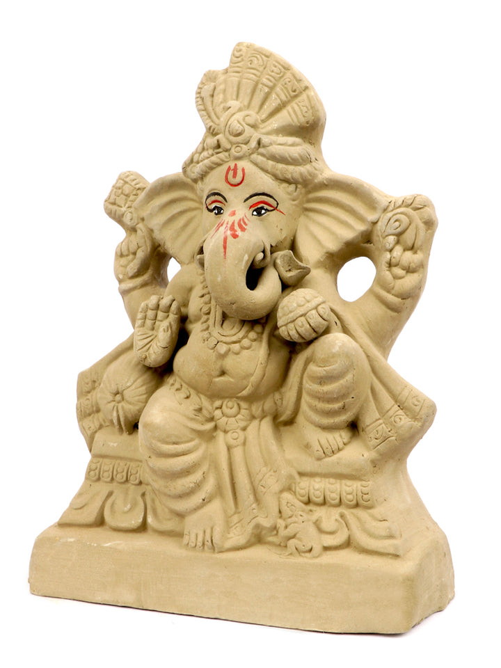 Eco Friendly Ganesha statues are made of 100% biodegradable and eco-friendly material by using Shadu Mati Clay Mitti, which dissolves easily in water. The colours used are also natural, and they decompose and dissolve in water easily. Although they have been made all across India, West Bengal and Maharashtra often employ skilled artisans to make them.