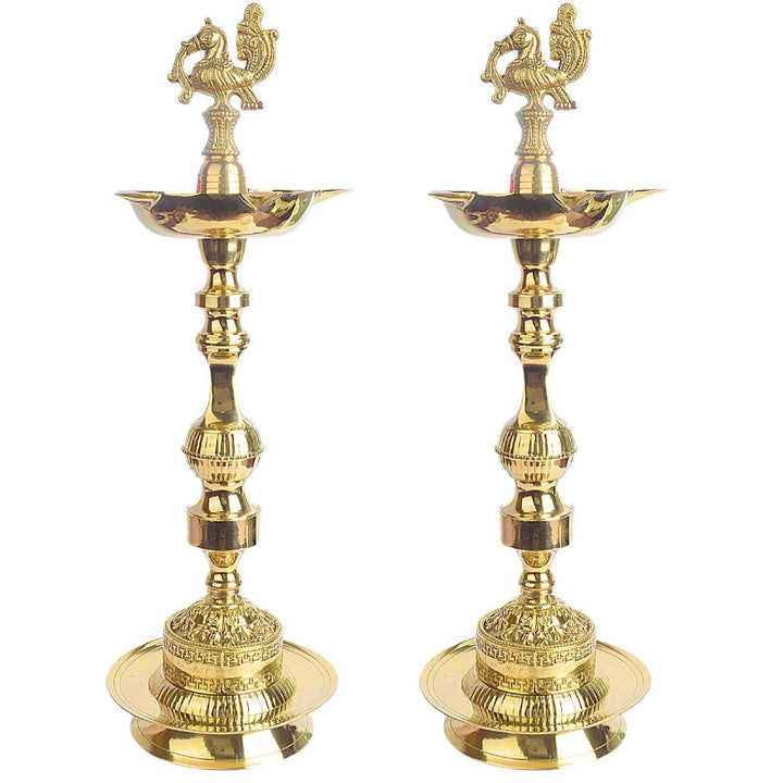 19 Inch Embossed Brass Peacock Kerala Samai Diya | Brass Peacock Diya | Kerala Samai Deepam | Embossed Brass Diya | Traditional Kerala Diya | Brass Oil Lamp | Spiritual Brass Lamp | Pooja Diya | Peacock Design Diya | Kerala Temple Lamp | Indian Ritual Lamp | Brass Diya for Pooja