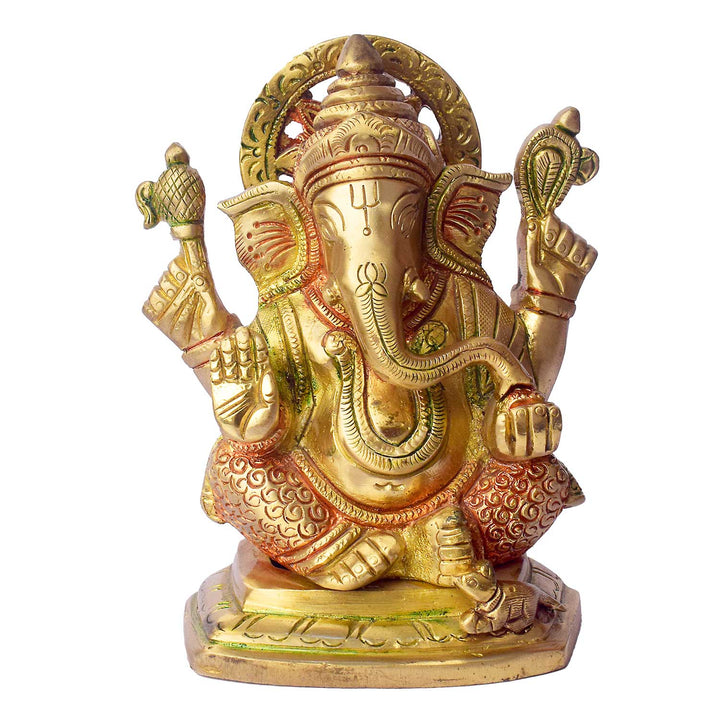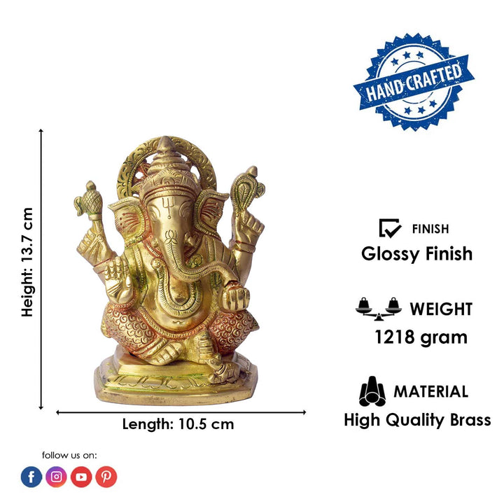 • About the Product: 5.4 Inch Multicolor Brass Lord Ganesha Idol for Home Mandir