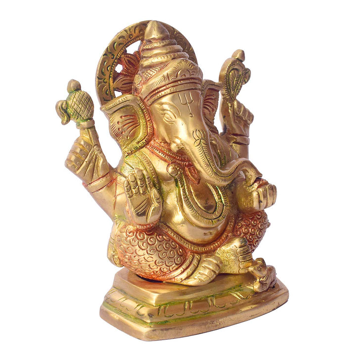 Multicolor Brass Ganesha Statue | Handcrafted Ganesha Statue | Brass Ganesha Idol for Gift | Brass Idol | Exclusive Brass Idol | Brass Gift Item for Housewarming | Premium Brass Idol for Sale | Antique Finish Brass Idol |