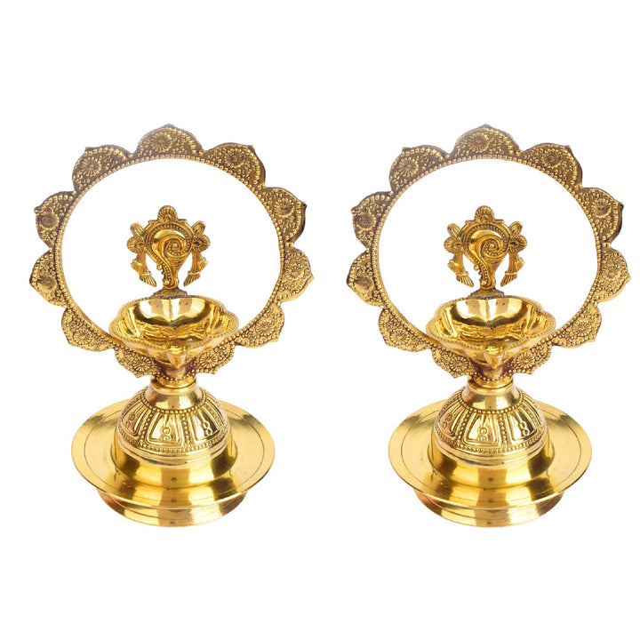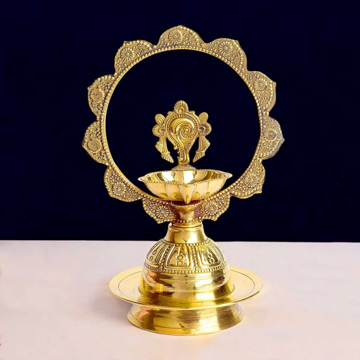Buy 7.5 Inch Embossed Shankh Morkiran Brass Diya | Satvikstore.in – satvikstore.in