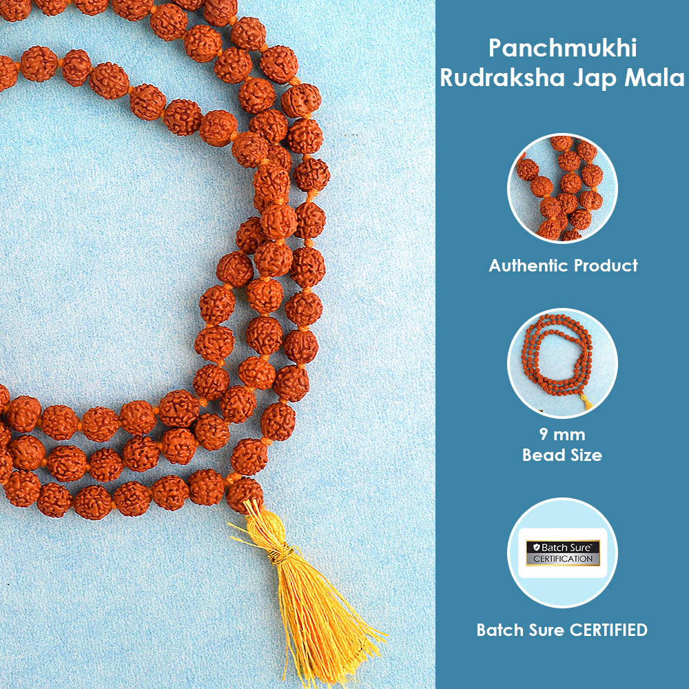 Panchmukhi Rudraksha Jaap Mala 9mm | Rudraksha mala for meditation and mantra | Original Rudraksha mala for peace | Natural Panchmukhi Rudraksha Jaap Mala | Rudraksha mala for positive energy |