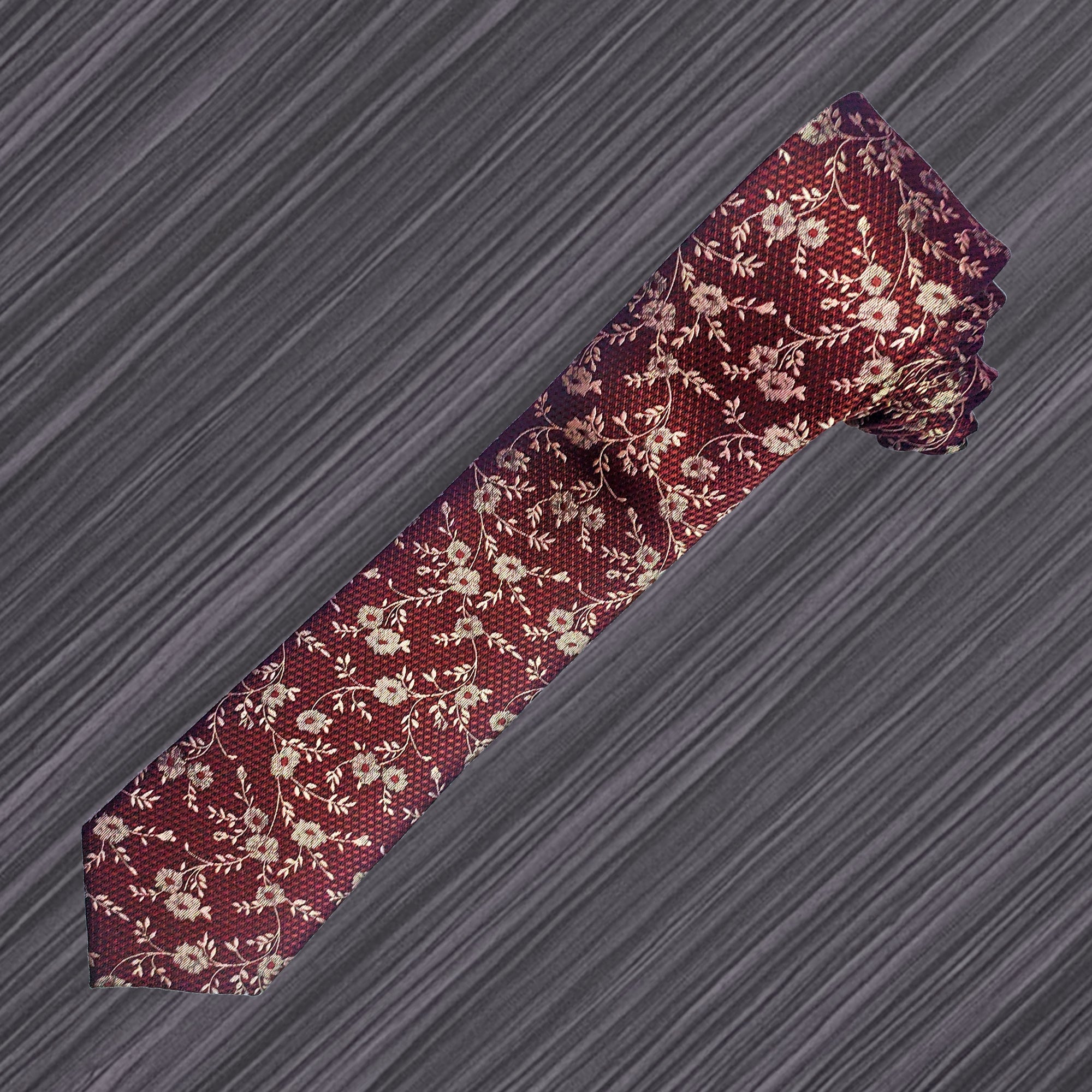 Red design Tie with Dude Bhai Card Gift Rakhi Combo Set
